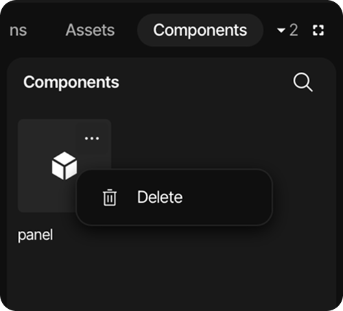 In the component management panel select the component that needs to be deleted, and click on the three-dot icon on the top right.
