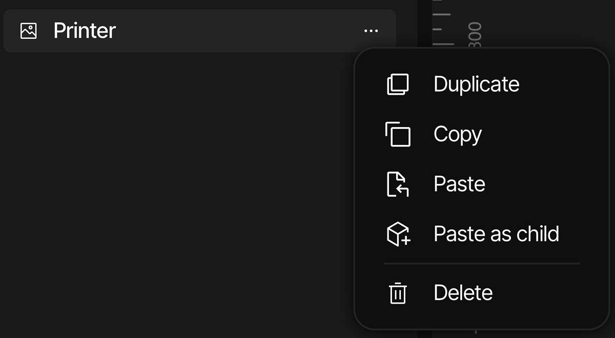 • Copy and paste elements with keyboard shortcuts Ctrl+C/Cmd+C and Ctrl+V/Cmd+V