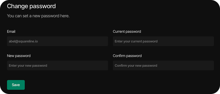 On this page, a new password can be set for the users account by completing the "New password" and "Confirm new password" fields. This functionality is particularly valuable if a password is forgotten during login and a password reset is required.