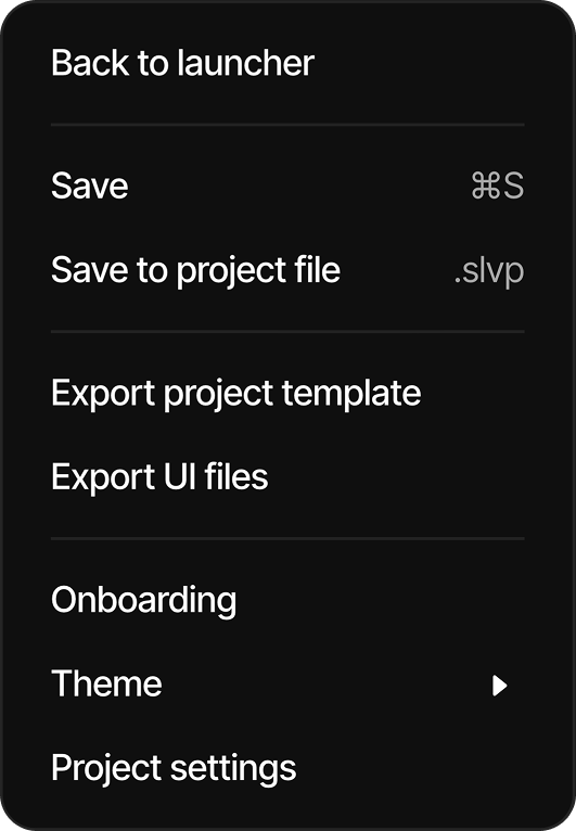 Save to project file (.slvp) - Exports the complete project as an .slvp file