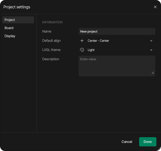 - LVGL theme - Provides the option to switch between the built-in LVGL themes.