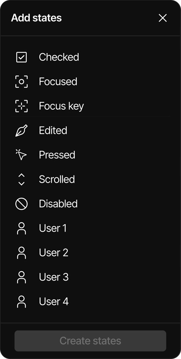 - If multiple states are selected at once (e.g., "Checked" and "Pressed"), the system will automatically create combined states